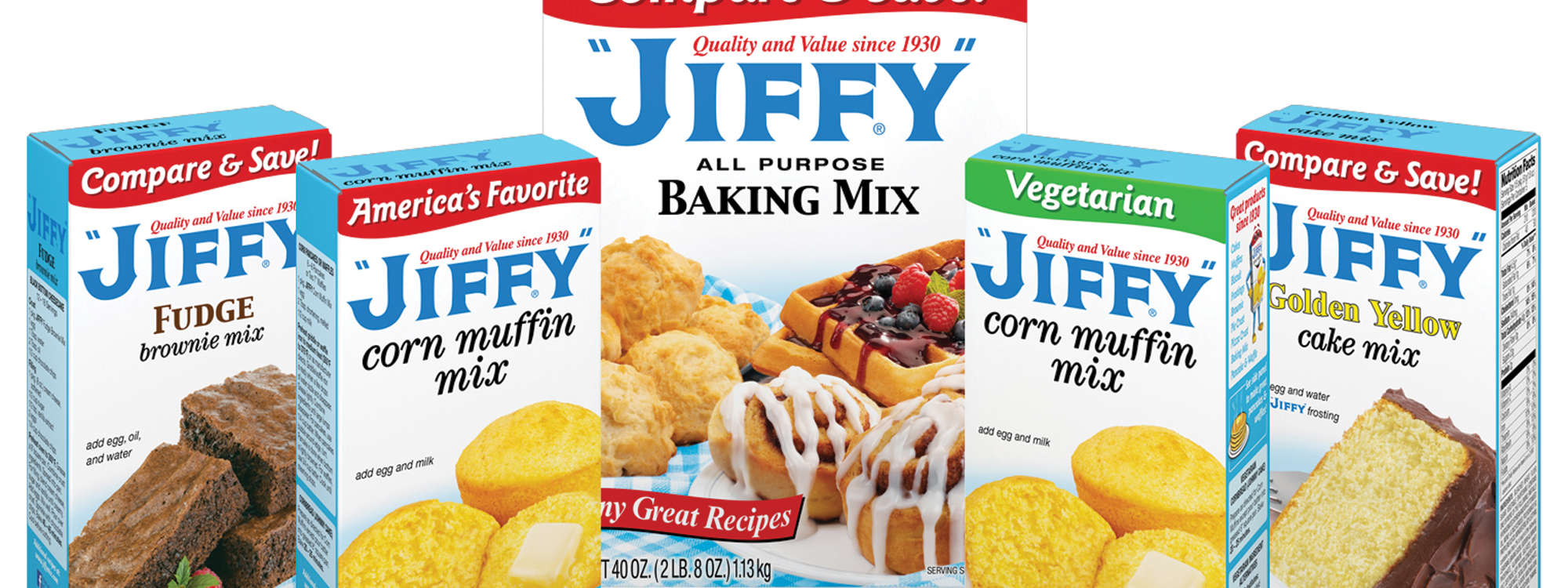 Incidentally, if you assumed the product name has something to do with speed, you’re right. Mabel White Holmes was trying to come up with the right name way back in the 1900s when she remembered how the family cook would tell her father that good, hot biscuits would be ready “in a jiffy.”